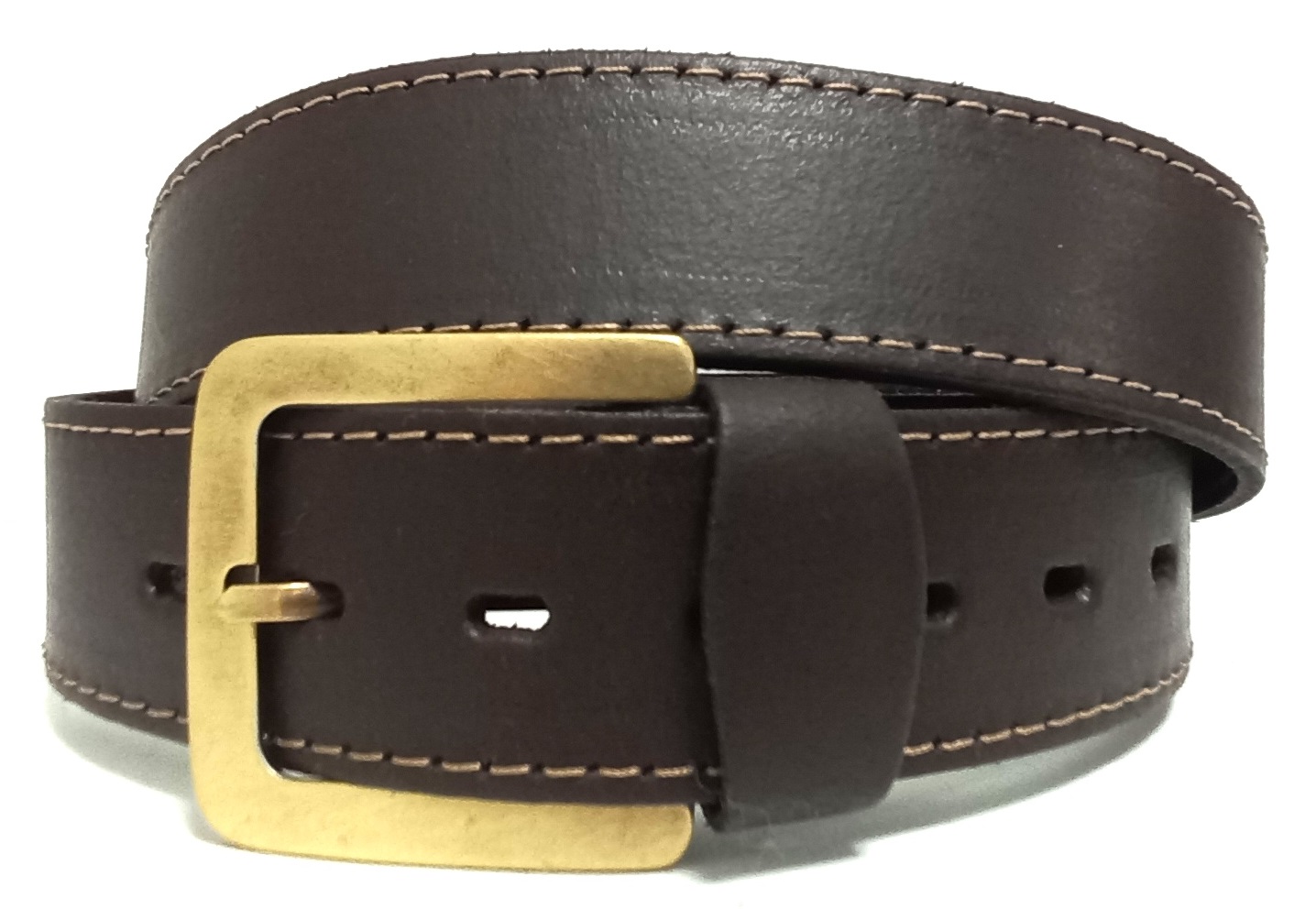 - Pásek z hnědé hovězí kůže klasický s pěknou staromosaznou přezkou