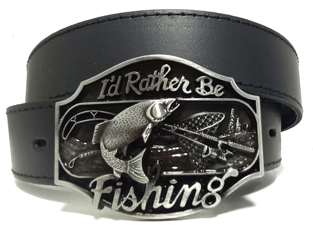 - černý opasek z hovězí kůže s větší přezkou s rybářským motivem